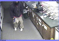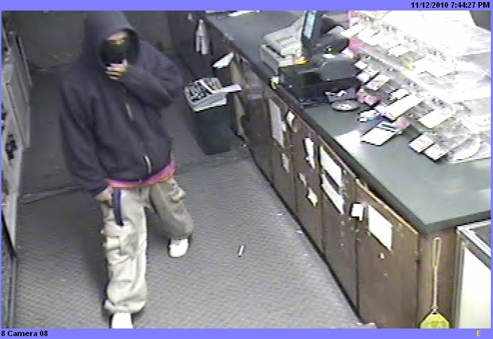 According to the police report, three black males (pictured right), wearing ski masks and hooded sweatshirts, entered the store at approximatley 7:51 pm last Friday. One of the suspects was carrying a firearm and pointed it at the store clerk while the other suspects took cigarettes and money from the cash register. The three suspects left the store with four cartons of cigarettes and an undetermined amount of cash.
